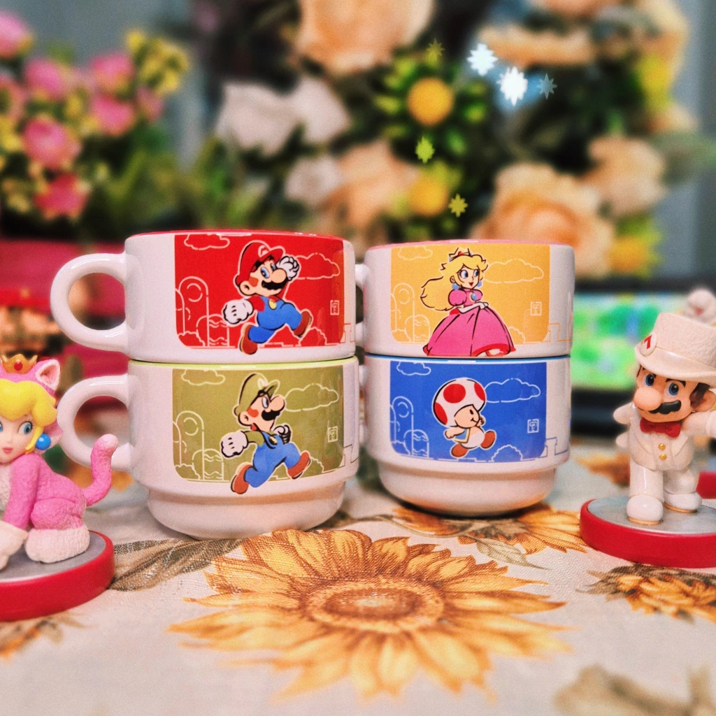 Este conjunto incrível vem com 4 xícaras de aproximadamente 150ml em cerâmica, cada uma com um interior colorido que traz toda a magia do universo do Mario. É a edição limitada única que todo fã deve ter em casa!